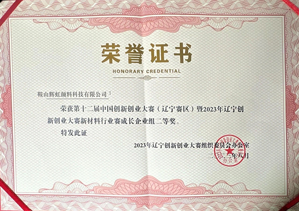 以电池级普鲁士蓝(白)钠电池正极材料产业化项目为题,在2023年参加了第十二届中国创新创业大赛,获得了鞍山市二等奖、辽宁省二等奖、中国创新创业大赛优秀企业奖